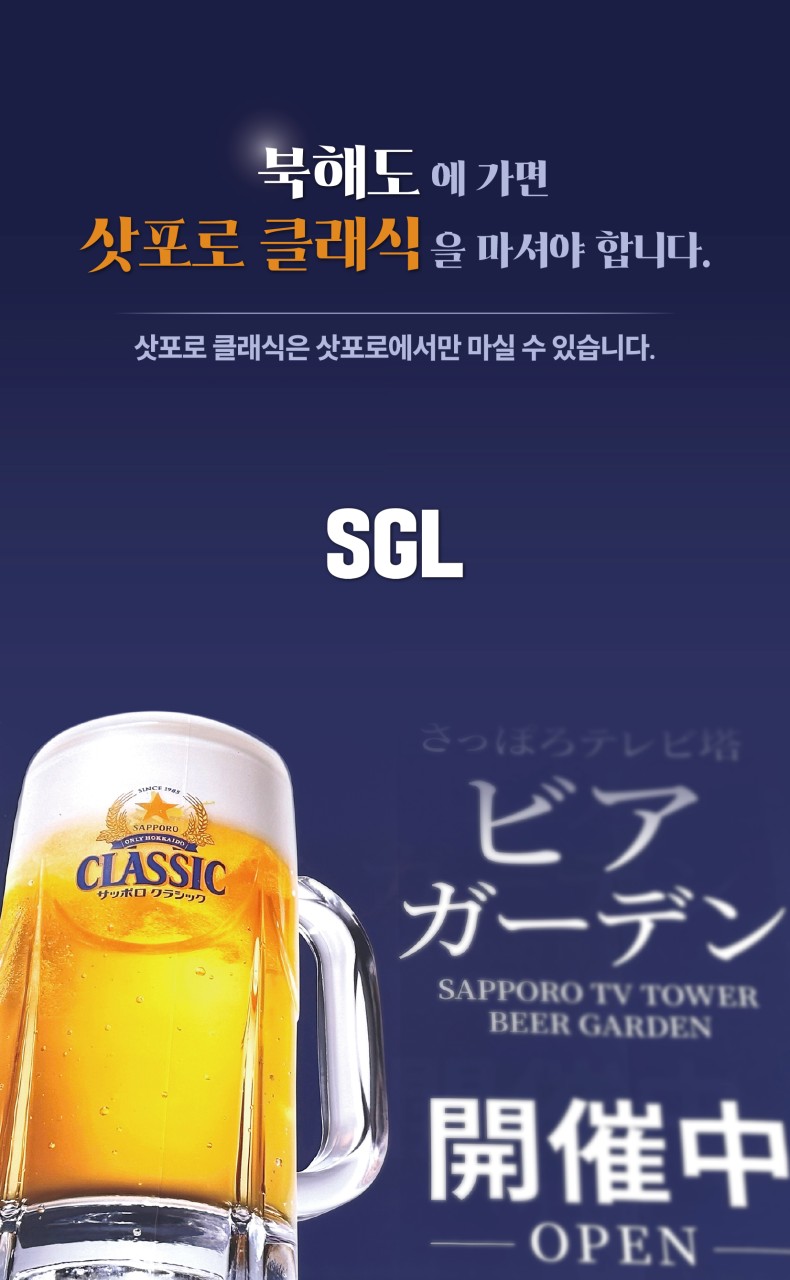 왕복 항공부터 공항세, 유류세, 호텔, 조식, 골프장(그린피, 카트비), 호텔 ↔ 골프장 간 셔틀차량 등이 포함 되었어요. 단, 중식과 석식, 1/4일차 골프장 → 공항, 공항 → 호텔 송영 비용은 불포함으로 상품이 구성 되었어요. 일본 홋카이도에 가면, 시원한 삿포로 클래식을 꼭 마셔야 해요!