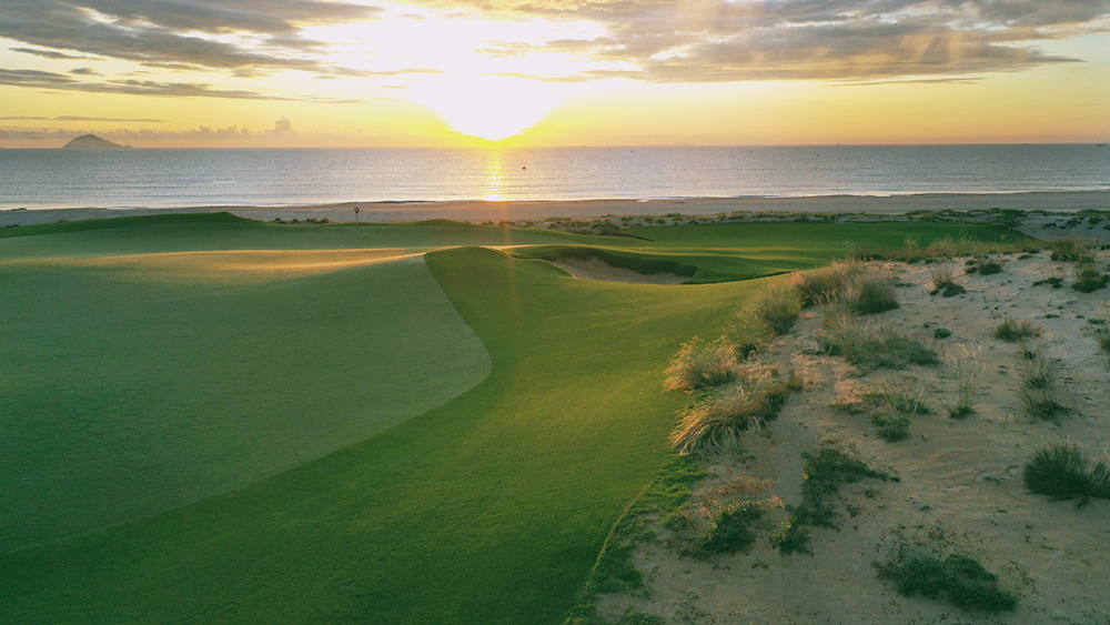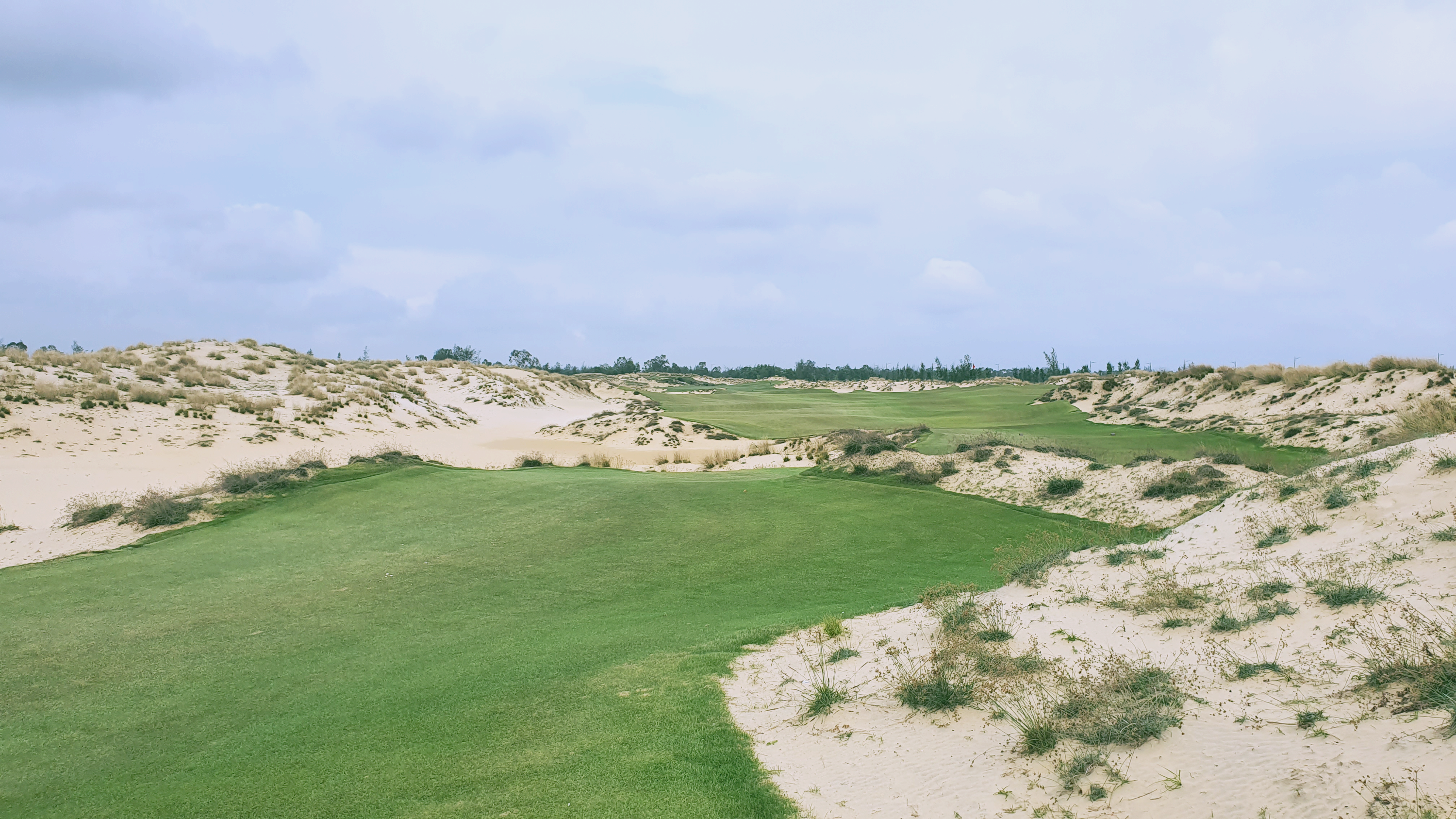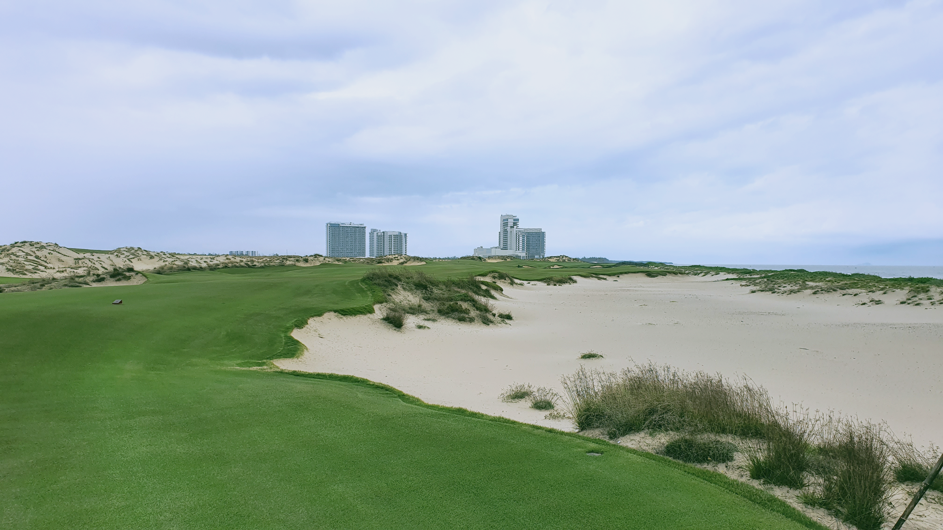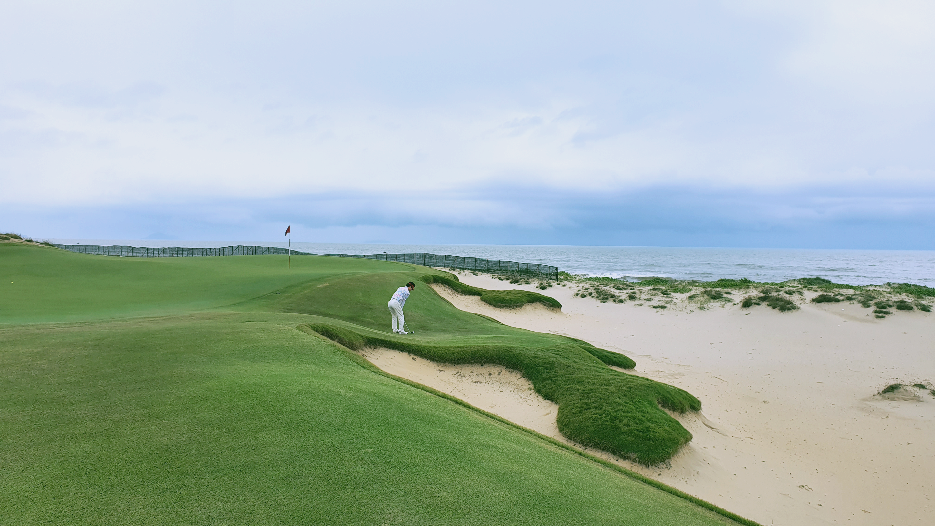 남중국해 해안선을 따라 자연지형을 그대로 이용한 베트남 명문 링크스 코스답게 아름다운 골프장 풍광을 감상하기 위해, 매년 많은 골프 여행객들이 즐겨 찾고 있어요. 링크스 코스답게 골프장 내에 나무 한 그루 보이지 않고, 초록의 페어웨이보다 더 넓어 보이는 코스 옆의 웨이스트 벙커, 현락한 언듈레이션을 자랑하는 페어웨이를 따라 사구만이 길게 전개 되었어요.