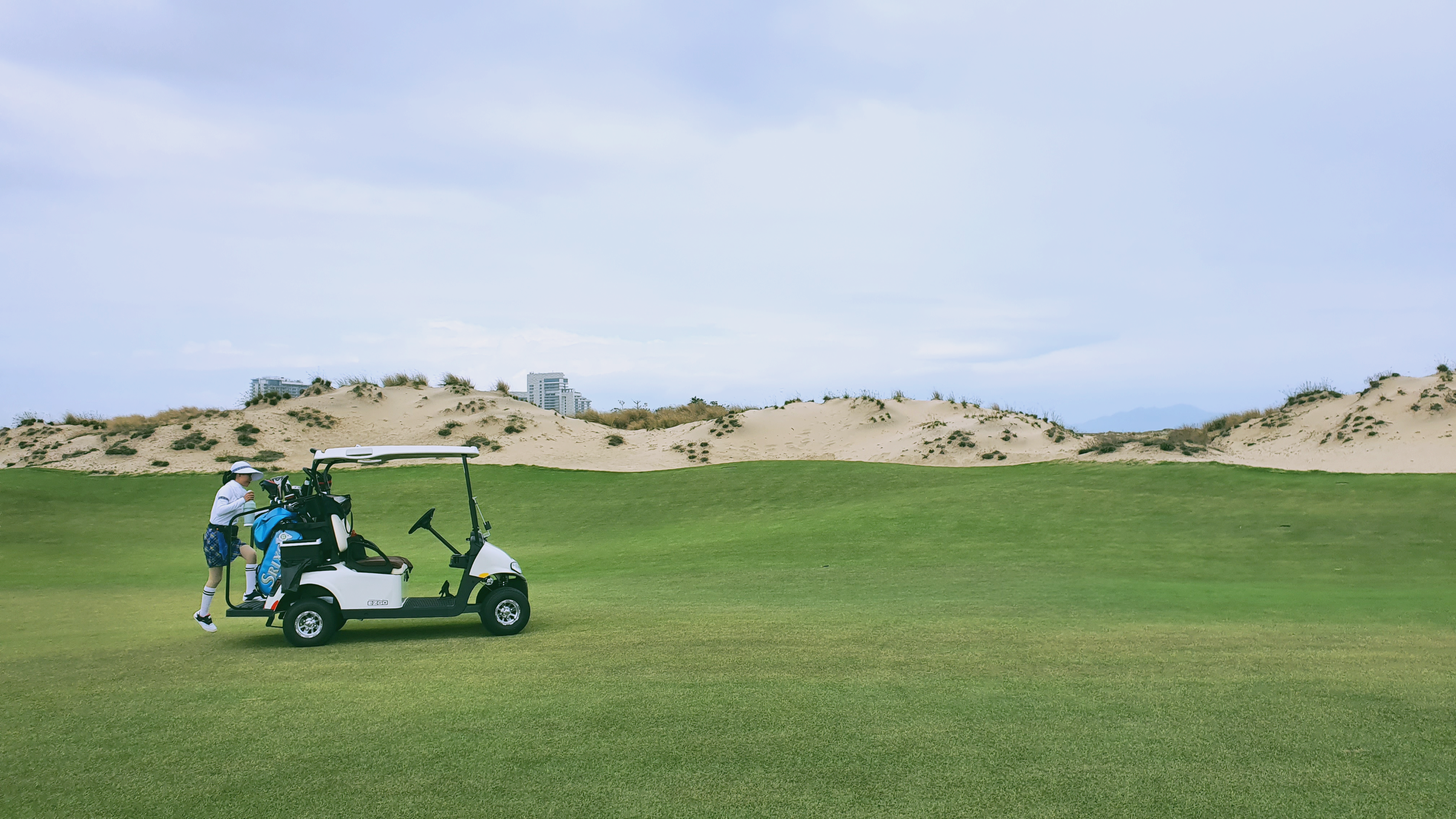 대부분의 코스가 페어웨이 반, 웨이스트 벙커 1/3, 나머지는 하얀 벙커 같은 사구들이 코스 내에 이어져 정말 아름다운 풍경을 자랑해요. 우기 때 많은 비가 내려도 모래 위에 코스가 조성되어, 배수 걱정 없이 쾌적한 라운딩이 가능해요. 또한, 1인 1캐디로 카트가 페어웨이 진입이 가능해, 편안한 다낭 골프를 즐길 수 있어요.