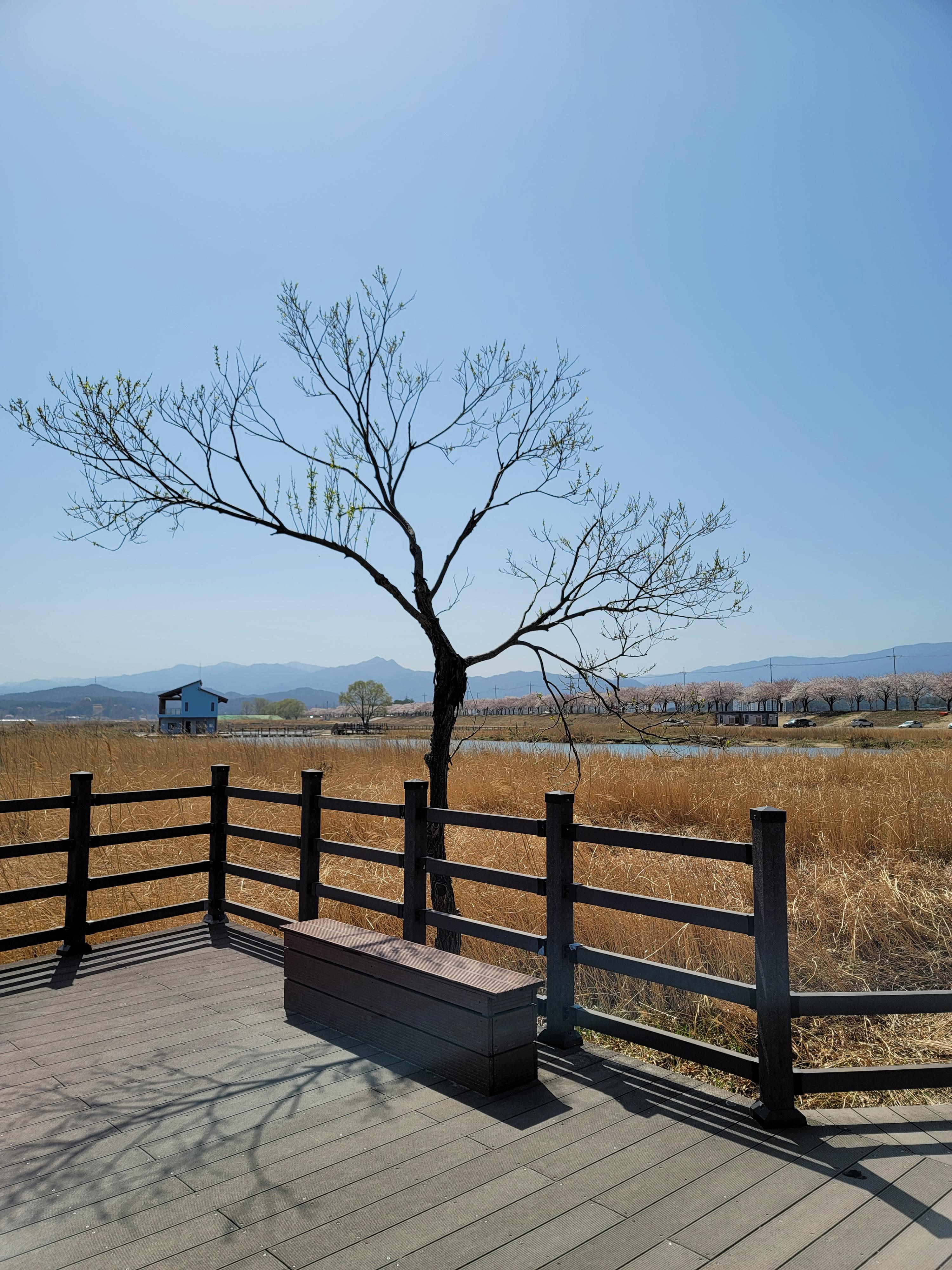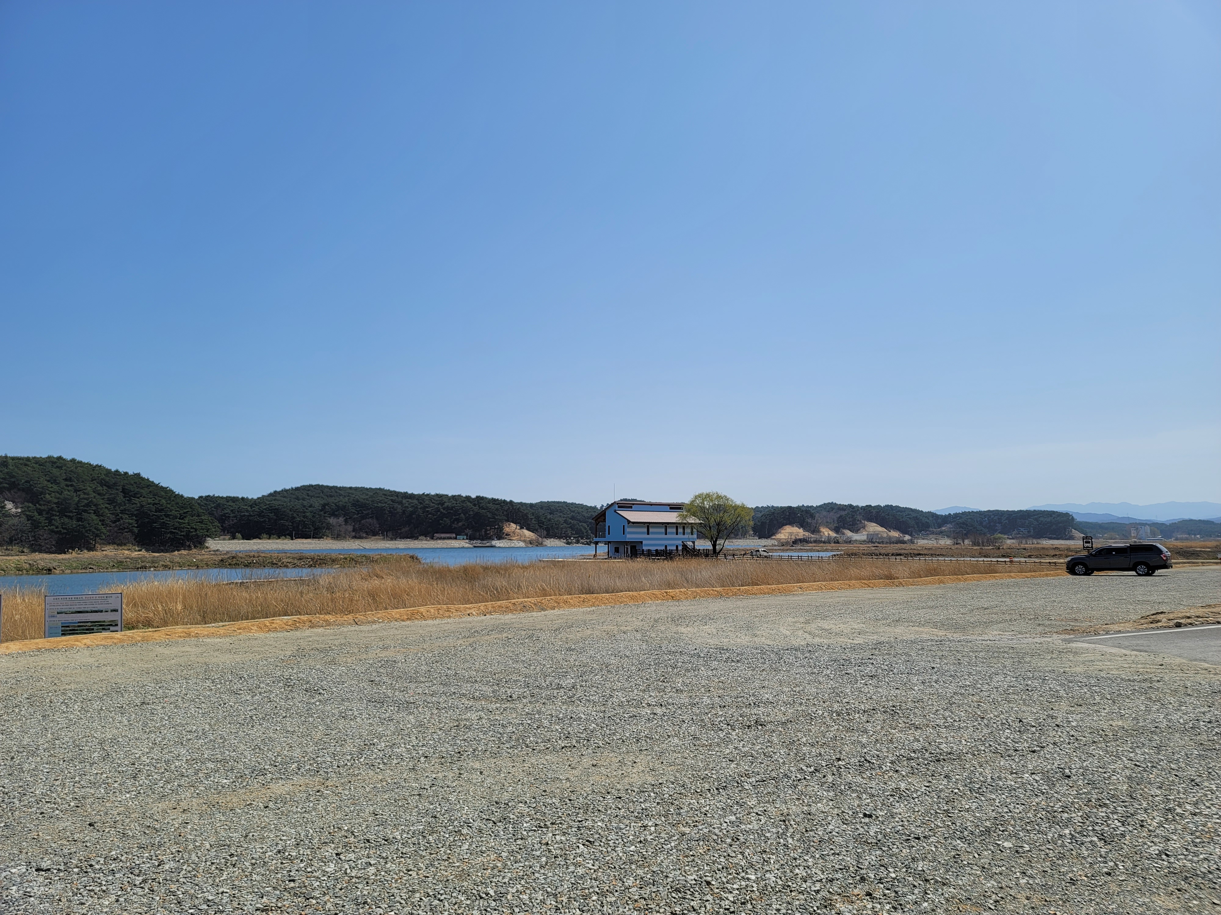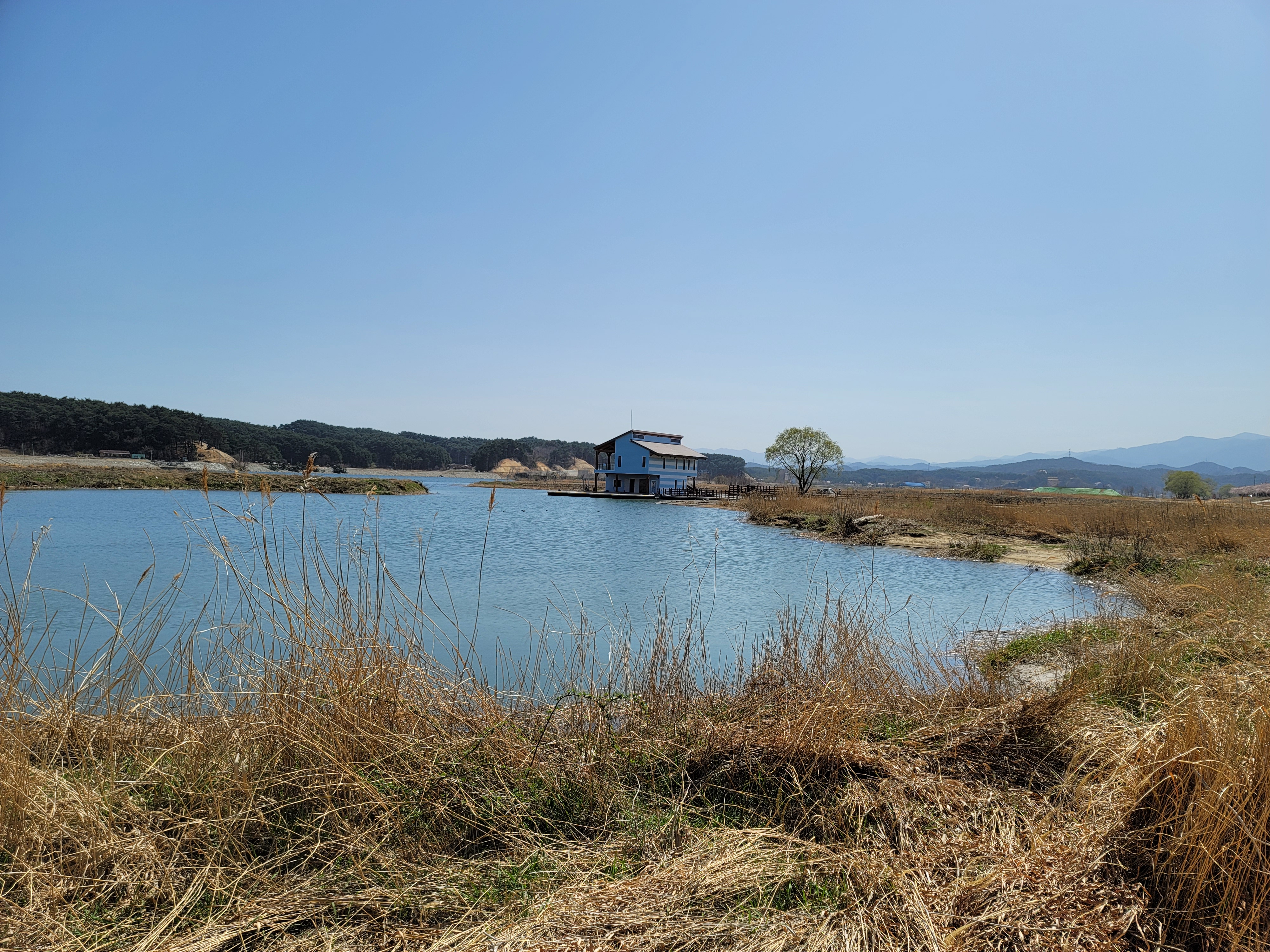남대천 수상레포츠센터 & 카페라는 허름한 건물이 남대천 생태 관찰로에 세워져 있지만, 지금은 운영을 안하는 것 같아요. 여유롭게 생태 관찰로 나무 데크길을 따라 산책하면서 아름다운 주변 환경을 배경으로 사진을 자유롭게 찍을 수 있어 너무 좋아요.
