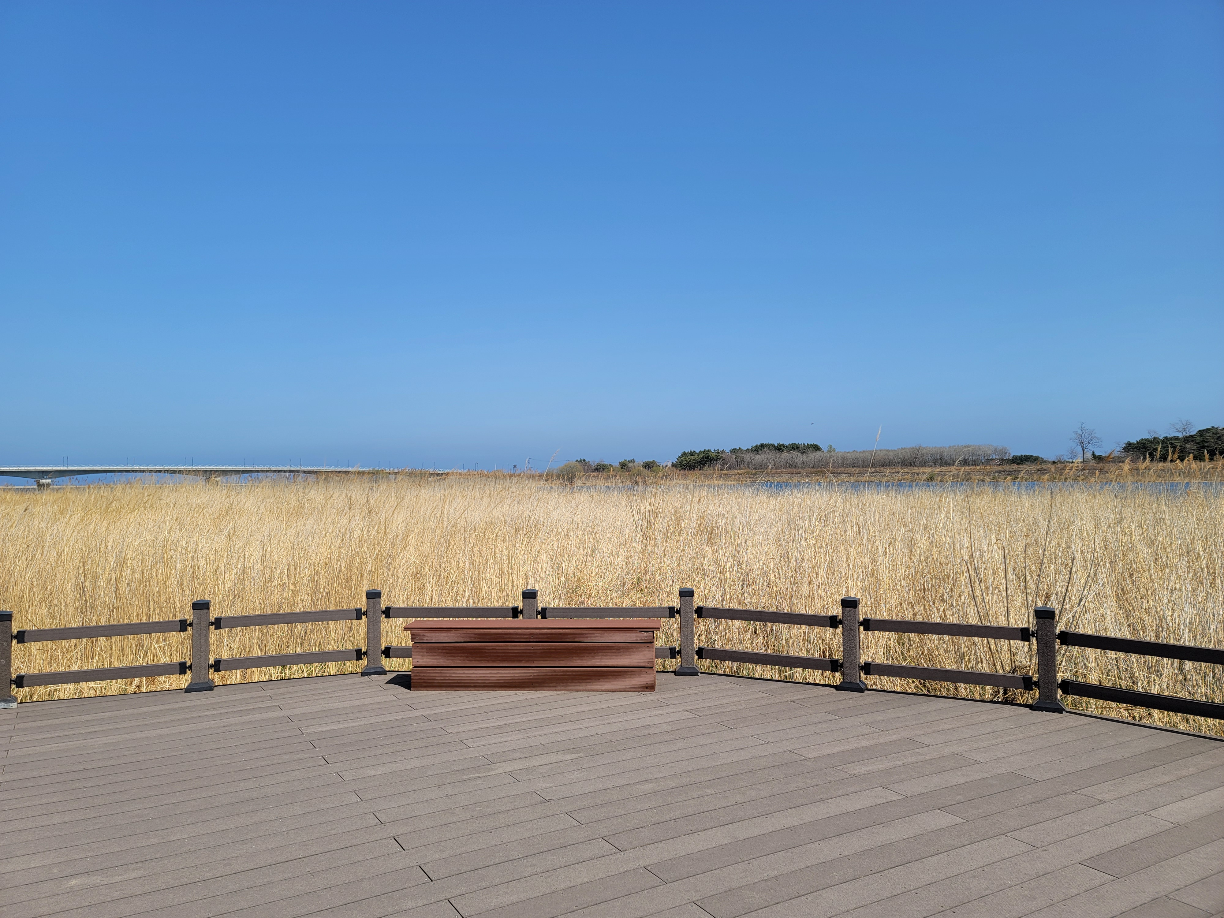 화장실도 잘 준비되어 여행객 입장에서 편안해요. 잘 정비된 나무 데크 길을 따라 풍성한 갈대와 물억새, 달뿌리풀 등이 군락을 이루고 있어 더욱 아름다운 남대천 생태관찰로를 감상할 수 있어요. 양양 남대천의 자연을 관찰할 수 있는 곳이 바로 '양양 남대천 생태 관찰로'라고 하네요.