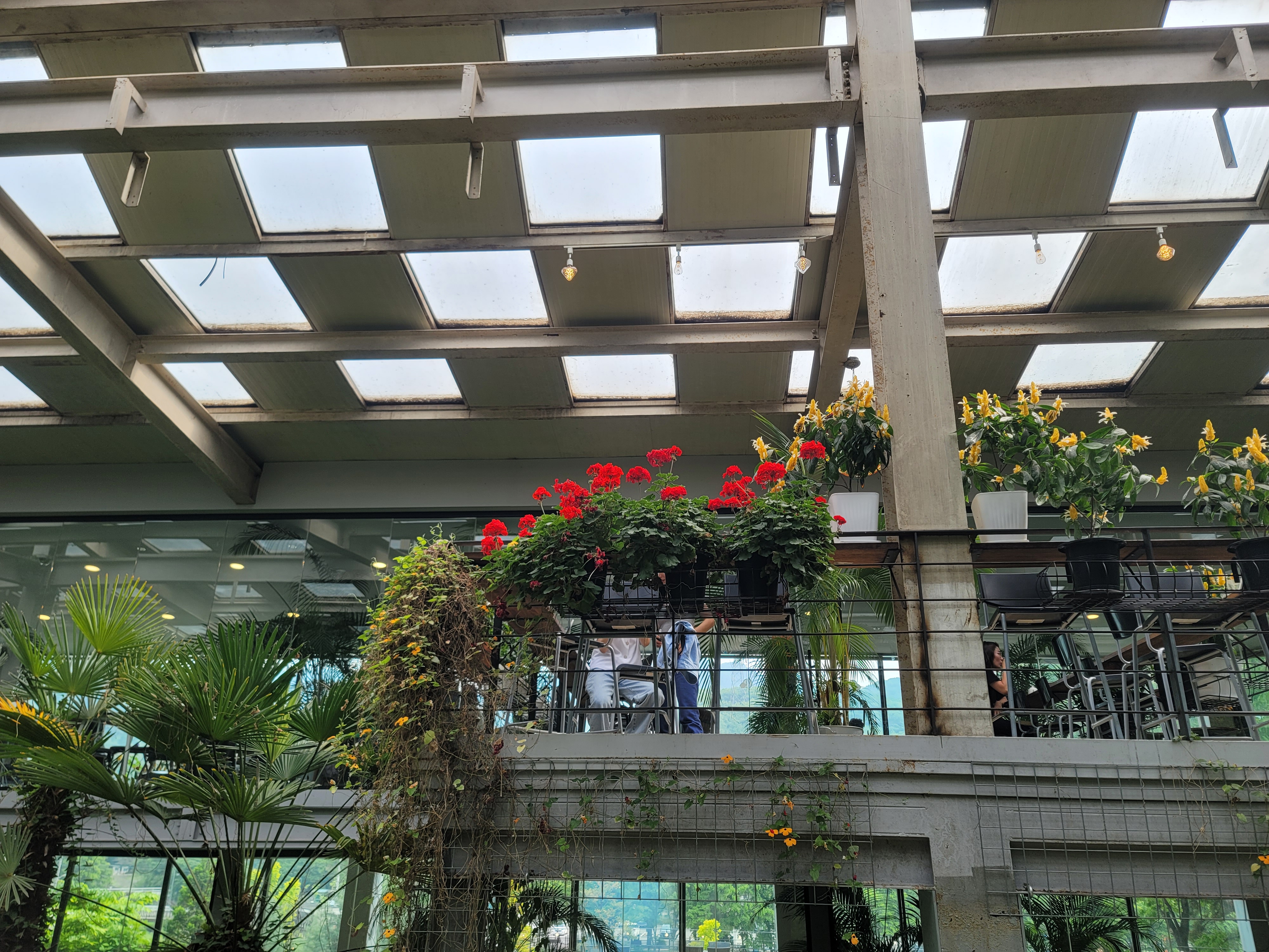 양주 오랑주리 대형 카페는 1층과 2층 구조로 잘 조성 되었어요. 정글 숲 같은 컨셉으로 꾸며져 있기 때문에, 언제 어디서나 화사한 꽃과 울창한 나무들을 구경할 수 있어요. 보통, 무더운 여름철 식물원을 찾으면 덥고 습한 느낌을 받을 수 있어요. 하지만, 이곳은 층고가 높고 시원한 실내 환경 덕분에 365일 쾌적함을 자랑해요.