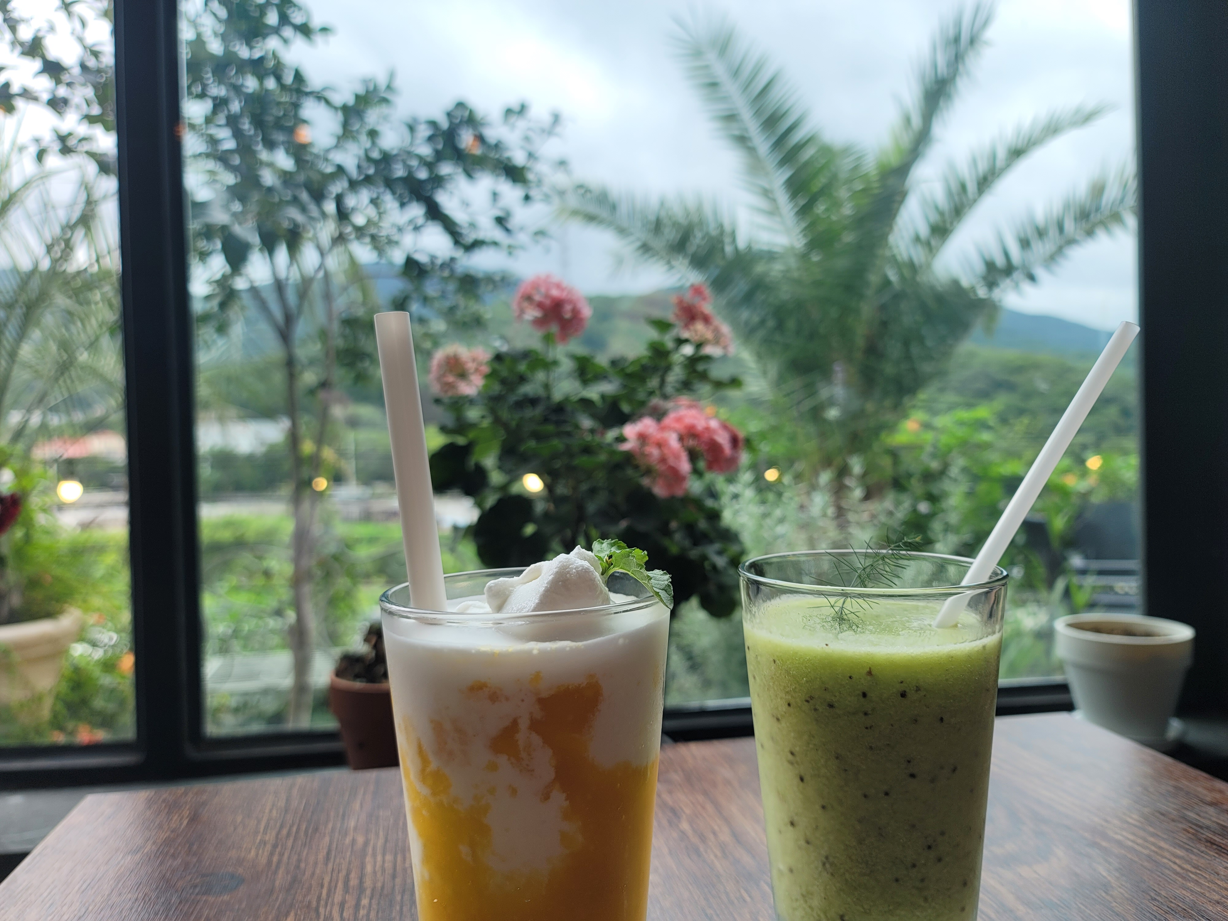 이름 모를 다양한 종류의 식물과 꽃들을 구경하다보면 어느새 집에 돌아갈 시간이에요. 아이 또는 부모님을 모시고 오면 정말 좋을 것 같아요. 커피나 음료 맛보다 분위기에 흠뻑 빠질 수 있는 힐링 공간이 너무 만족스러워요. 비가 내리는 날 통유리로 떨어지는 빗방울을 감상해보세요.